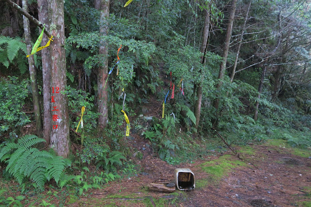 地,右前岔南稜有布條指引登「江口山」;左岔研海